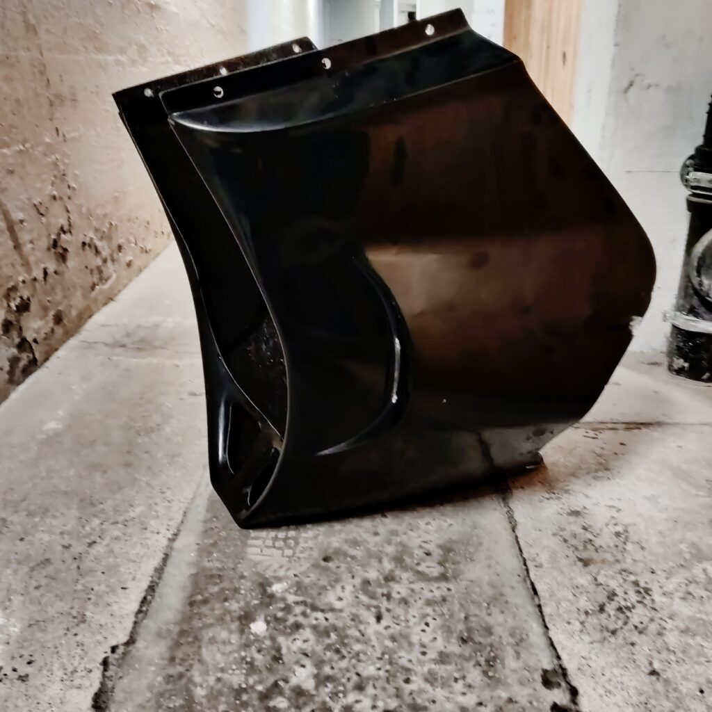 Har været så heldig at møde Freddy Melander fra Karlslunde. Fik den nederste del af helkåben af ham. Det skulle have været et vinterprojekt, men da det er så bidende koldt her denne vinter, så må det vente lidt med tilpasning og montering. Den skal selvfølgelig males i cyklens farver tilsidst.