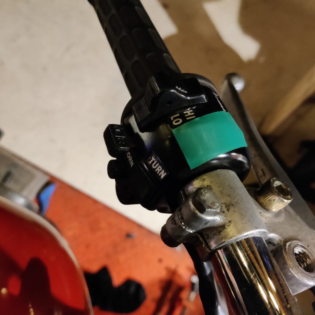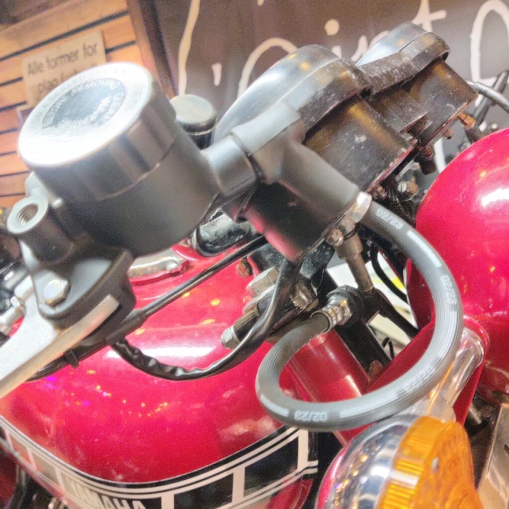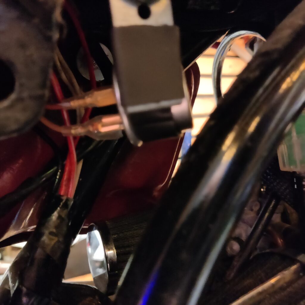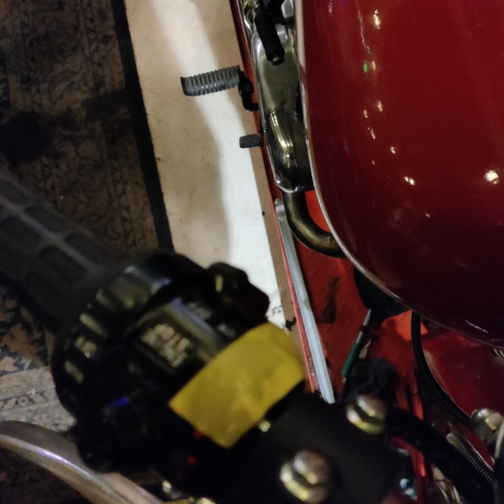 Da jeg igen måtte arbejde på cyklen, blev det gamle ledningsnet taget af cyklen, og det nye sat på. Kan godt sige, det er en drøm at arbejde med et nyt ledningsnet, man ved hvad ledningerne benyttes til, og ved inderst inde at alle ledninger gå til det de forventes at bruges til. Samtidig havde jeg fået de nye styrkontakter hjem fra England (jeg er meget glad for Yambits findes). Så de blev samtidig sat på cyklen og det nye ledningsnet. Da jeg sad og kiggede på Cyklen, tænkte jeg, det styr dur ikke ikke til mig selv om det passe godt til cyklen i sig selv. Så nyt styr blev bestilt og sat på. Det gør at den ser original ud nu, og ikke med det lave styr som sad på den.