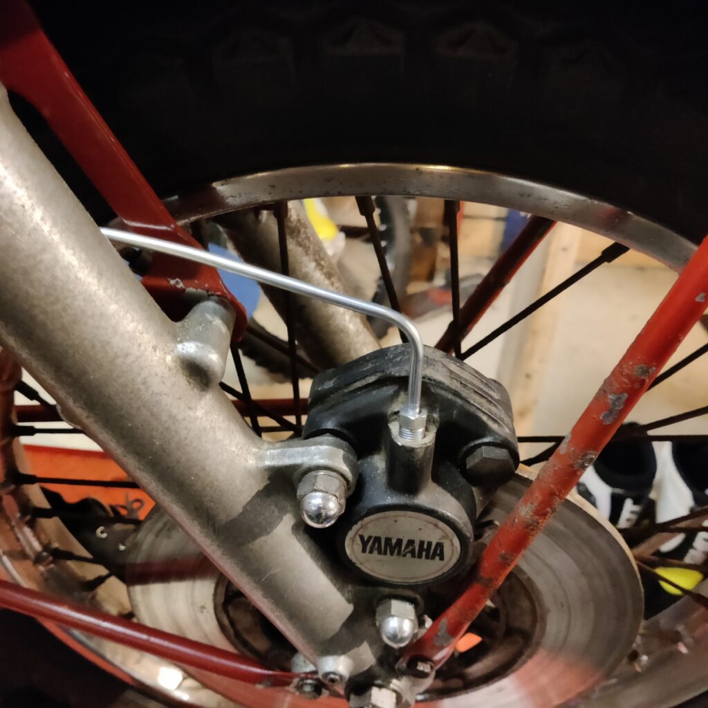 Da jeg ikke kunne finde ud hvilken for bremse der sad på cyklen (ihvertfald ikke den oprindelige), tænkte jeg i første omgang at benytte en jeg havde læggende fra min XJ900, så den fik ny indmad. og så kom jeg i tvivl om det nu også var det bedste valg, og ombestemte mig så til en reproduktion af den originale, indkøbt hos Yambit i UK. Caliber skulle selvfølgelig også have en omgang ny indmad, så nye O-ringe og pakninger og stempler er sat i nu.