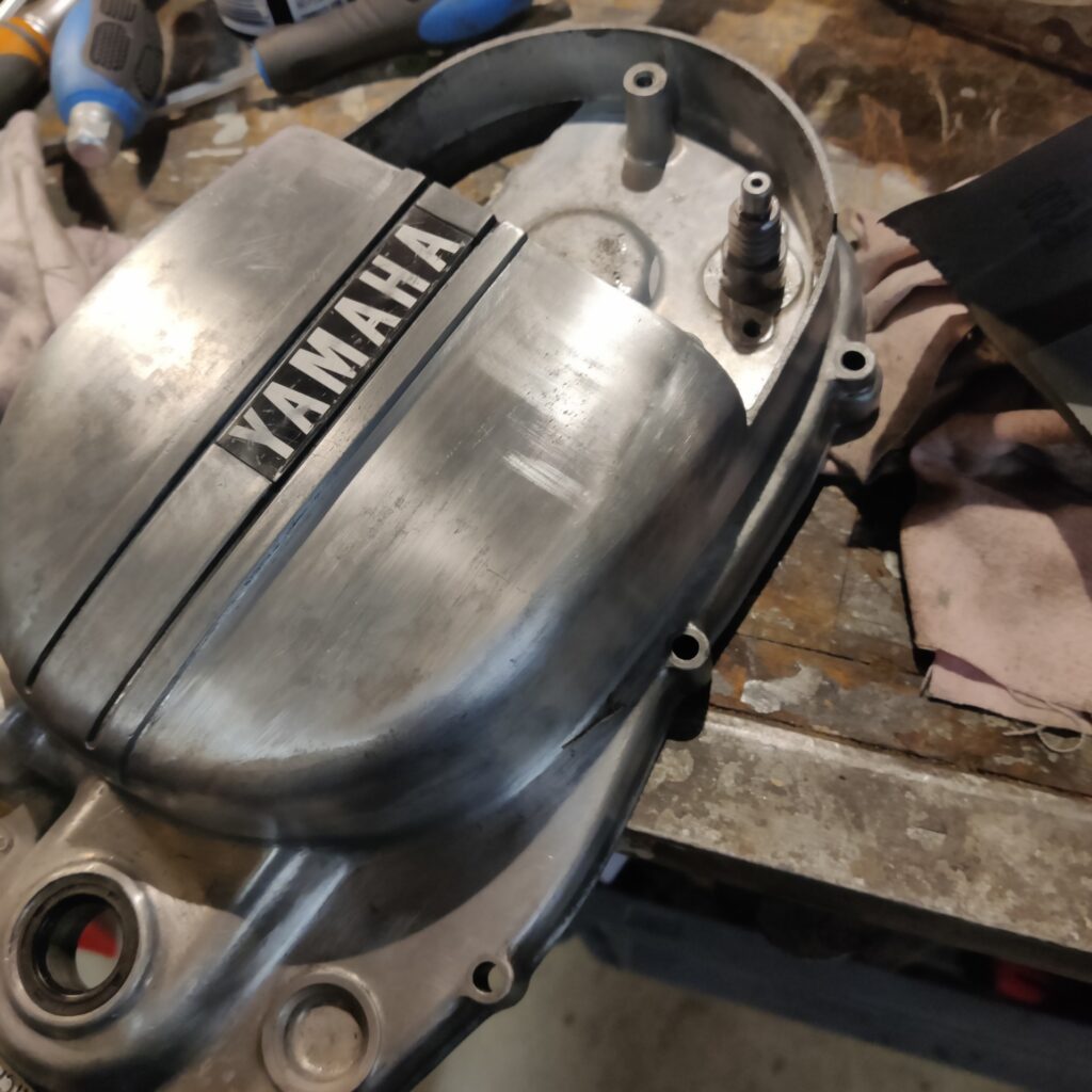Nu motoren er ude, så kunne jeg ikke dy mig, og gik igang med at polerer sidedækslerne på motoren. De er ikke færdige her på billederne, men er nu klar til at blive poleret på maskinen.